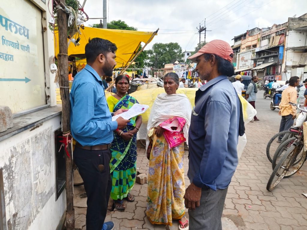 फिल्ड व्हिजिट- महाल कामगार नाका कॉर्नर मीटिंग- लाभार्थ्यांशी प्रत्यक्ष संवाद साधून प्रमाणपत्र प्रक्रियेबाबत मार्गदर्शन करताना.