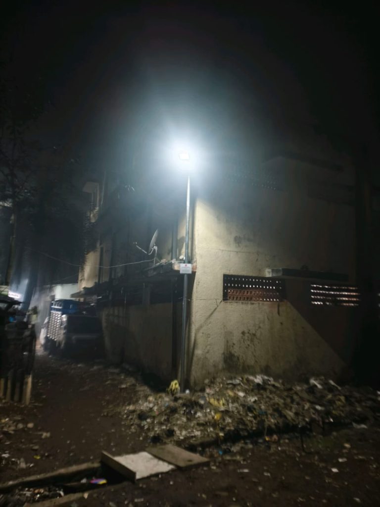 Here are some pictures showing the results after the installation of street lights in Ambujwadi: